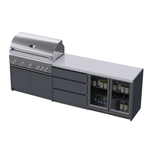 The Whistler Fairford Outdoor Kitchen is the easiest way for you to own a quality outdoor kitchen in your own garden.  The units arrive pre-built, simply unpack, line them up and bolt together.  You will be up and running in no time.  If you want to add more storage to you layout in the future then no problems, choose from a range of extra storage and drawer units and even add another fridge.  The powerful gas grill has everything you need for grilling success, and is ideal for family entertaining.  This superb modular outdoor kitchen system provides quality, flexibility and value for money and gives you everything you need for an awesome setup right out of the box.